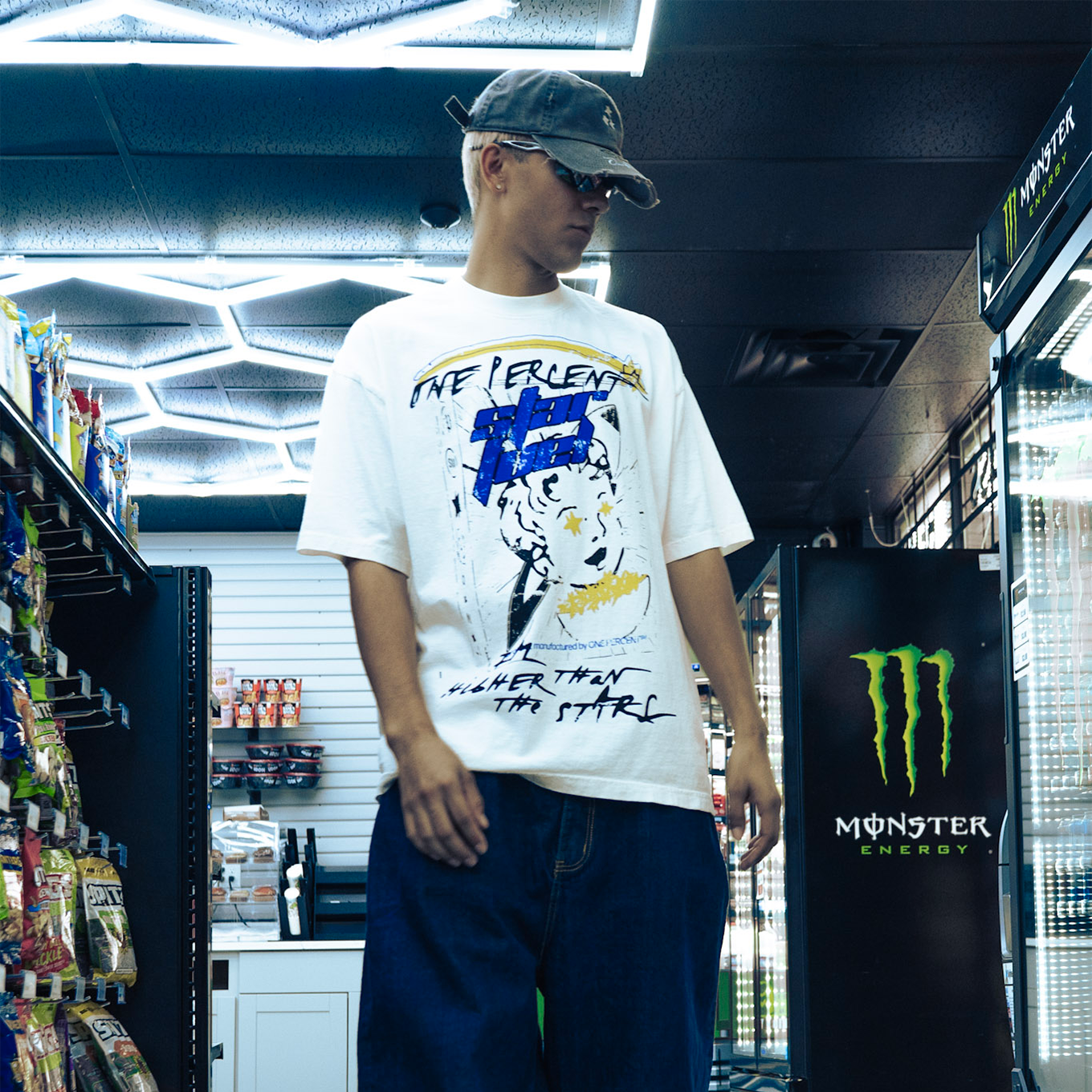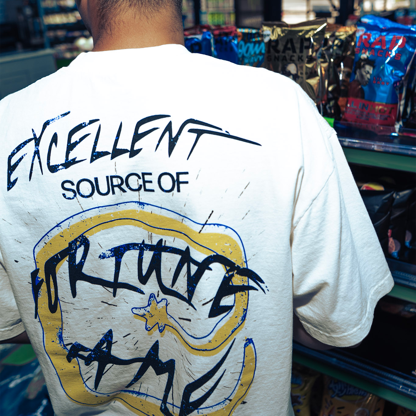 Off-white T-shirt featuring STARFUEL graphic